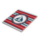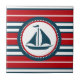 Schönes Design mit runder Dekoration der Segelboote auf rot, blau und weiß gestreiftem Hintergrund