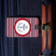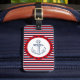 Schönes Design mit handgezeichneter Ankerdekoration auf blau, rot und weiß gestreiftem Hintergrund