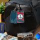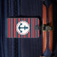 Nautisches Design mit Ankerdekoration in runder Form mit Sternen auf rot, blau und weiß gestreiftem Hintergrund