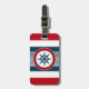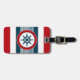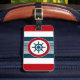 Schönes Design mit runder Dekoration der Segelräder auf blau, rot und weiß gestreiftem Hintergrund