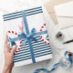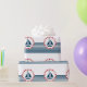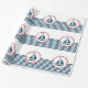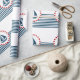 Schönes Design mit runder Dekoration der Segelboote auf blau-weiß gestreiftem Hintergrund