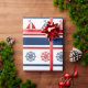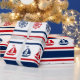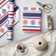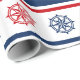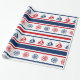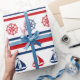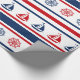 Schönes Design mit Segelboot und Kompassdekoration auf rot, blau und weiß gestreiftem Hintergrund