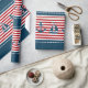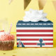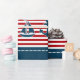 Schönes Design mit Segelboot und Ankerdekoration auf rot-weiß gestreiftem Hintergrund