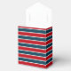Nautisches Design mit Ankerdekoration in runder Form mit Sternen auf rot, blau und weiß gestreiftem Hintergrund