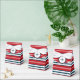 Nautisches Design mit Kompassdekoration in runder Form auf rot, blau und weiß gestreiftem Hintergrund