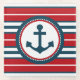 Nautisches Design mit Ankerdekoration in runder Form auf rot, blau und weiß gestreiftem Hintergrund