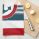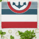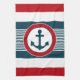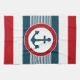 Nautical design with anchor decoration in round shape on blue, red and white striped background