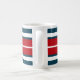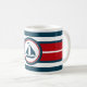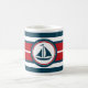 Schönes Design mit runder Dekoration der Segelboote auf rot, blau und weiß gestreiftem Hintergrund