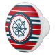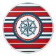 Nautisches Design mit Kompassdekoration in runder Form auf rot, blau und weiß gestreiftem Hintergrund