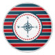 Nautisches Design mit Kompassdekoration in runder Form mit Sternen auf rot, blau und weiß gestreiftem Hintergrund
