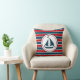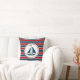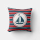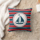 Schönes Design mit runder Dekoration der Segelboote mit Sternen auf rot, blau und weiß gestreiftem Hintergrund