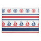 Schönes Design mit Segelboot und Kompassdekoration auf rot, blau und weiß gestreiftem Hintergrund