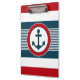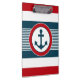 Nautical design with anchor decoration in round shape on blue, red and white striped background