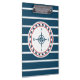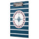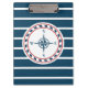 Nautisches Design mit Kompassdekoration in runder Form auf blau-weiß gestreiftem Hintergrund