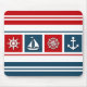 Schönes Design mit Segelboot, Anker, Kompass und Dekoration von Segelrädern auf gestreiftem Hintergrund