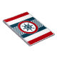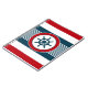 Schönes Design mit runder Dekoration der Segelräder auf blau, rot und weiß gestreiftem Hintergrund