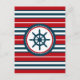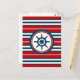 Schönes Design mit runder Dekoration der Segelräder auf rot, blau und weiß gestreiftem Hintergrund
