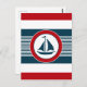 Schönes Design mit runder Dekoration der Segelboote auf blau, rot und weiß gestreiftem Hintergrund