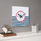 Nautisches Design mit Kompassdekoration in runder Form auf blau-weiß gestreiftem Hintergrund