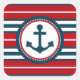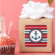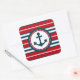 Nautisches Design mit Ankerdekoration in runder Form auf rot, blau und weiß gestreiftem Hintergrund