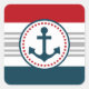Nautisches Design mit Ankerdekoration in runder Form auf blau, rot, grau und weiß gestreiftem Hintergrund