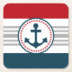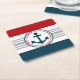 Nautisches Design mit Ankerdekoration in runder Form auf blau, rot, grau und weiß gestreiftem Hintergrund