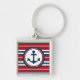Nautisches Design mit Ankerdekoration in runder Form auf rot, blau und weiß gestreiftem Hintergrund