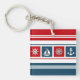 Schönes Design mit Segelboot, Anker, Kompass und Dekoration von Segelrädern auf gestreiftem Hintergrund