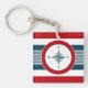 Schönes Design mit Kompassdekoration in runder Form auf blau, rot und weiß gestreiftem Hintergrund