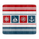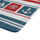 Schönes Design mit Segelboot, Anker, Kompass und Dekoration von Segelrädern auf gestreiftem Hintergrund