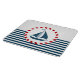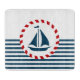 Schönes Design mit runder Dekoration der Segelboote auf blau-weiß gestreiftem Hintergrund