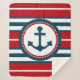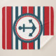 Nautisches Design mit Ankerdekoration in runder Form auf rot, blau und weiß gestreiftem Hintergrund