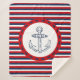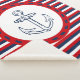 Schönes Design mit handgezeichneter Ankerdekoration auf blau, rot und weiß gestreiftem Hintergrund