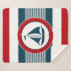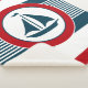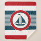 Schönes Design mit runder Dekoration der Segelboote auf blau, rot und weiß gestreiftem Hintergrund