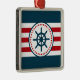 Nautisches Design mit runder Dekoration der Segelräder mit Sternen auf rot, blau und weiß gestreiftem Hintergrund