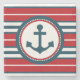Nautisches Design mit Ankerdekoration in runder Form auf rot, blau und weiß gestreiftem Hintergrund
