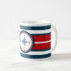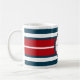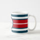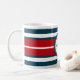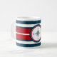 Nautisches Design mit Kompassdekoration in runder Form auf rot, blau und weiß gestreiftem Hintergrund