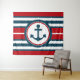 Nautisches Design mit Ankerdekoration in runder Form auf rot, blau und weiß gestreiftem Hintergrund