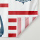 Schönes Design mit Segelboot und Kompassdekoration auf rot-weiß gestreiftem Hintergrund