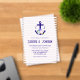 Nautical anchor and monogram framed by a lightened version of patriotic florals: white rose, blush pink peony and light blue. Preppy pink stripes for a summer, beach, or destination wedding event.