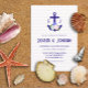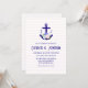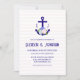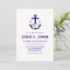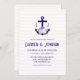 Nautical anchor and monogram framed by a lightened version of patriotic florals: white rose, blush pink peony and light blue. Preppy pink and white stripes for a summer, beach, or destination wedding event.