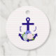 Nautical anchor and monogram framed by a lightened version of patriotic florals: white rose, blush pink peony and light blue. Preppy pink and white stripes for a summer, beach, or destination wedding event.