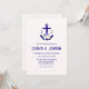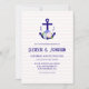 Nautical anchor and monogram framed by a lightened version of patriotic florals: white rose, blush pink peony and light blue. Preppy pink and white stripes for a summer, beach, or destination wedding event.