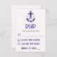 Nautical anchor and monogram framed by a lightened version of patriotic florals: white rose, blush pink peony and light blue. Preppy pink and white stripes for a summer, beach, or destination wedding event.