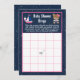 Diese niedliche und unterhaltsame Bingokarte mit Baby-Dusche ist mit einem Bären für Wassersegler, einem niedlichen rosa Vogel auf einem Segelboot und einer Möwe ausgestattet. Im Hintergrund ist ein sterniger Nachthimmel. Der Text verbindet fett- und serifenlose Schriftart für ein stilvolles und modernes Aussehen. Das ist ideal für eine Babydusche zum Thema Wassersport.