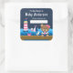 Nautical Girl Bear Pink und Navy Baby Buchzeichen Quadratischer Aufkleber