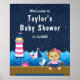 Nautical Girl Monkey Pink Navy Baby Dusche Willkom Poster