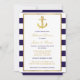 Nautical Gold Anchor Navy Strip Probe Abendessen Einladung