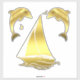 Nautical gold tone dolphin/porpoise + sailboat aufkleber