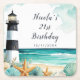 Beautiful birthday party coaster with a nautical black and white lighthouse, starfish and shells. Perfect for a birthday party. The words can be changed to suit your own details or requirements